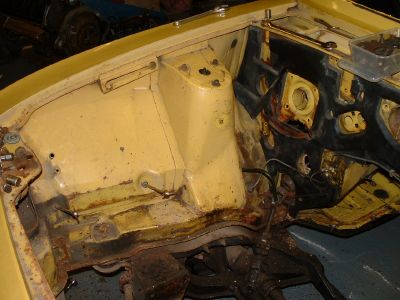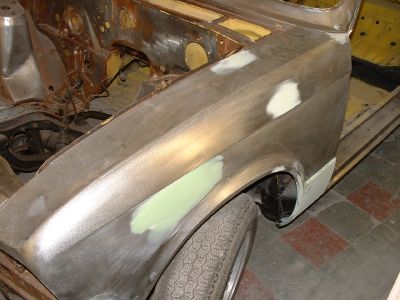 Both bottoms of the front wings are shot but I salvaged the panels needed from other wings I had that were good in this area, for repair panels.