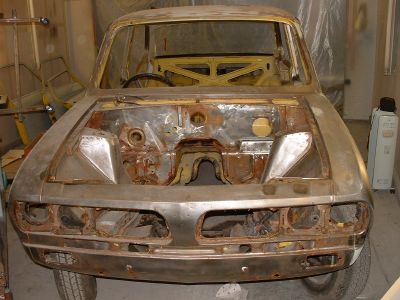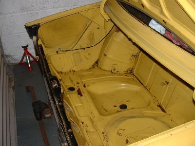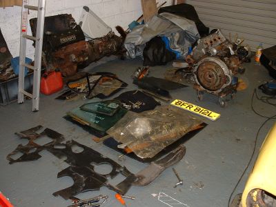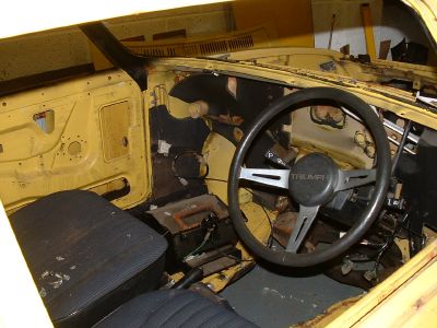 I started by taking the engine out. The gearbox & propshaft were already out, so it only took 10 mins. Then I removed the dash, wiring loom, front lights & a few other bits & pieces.