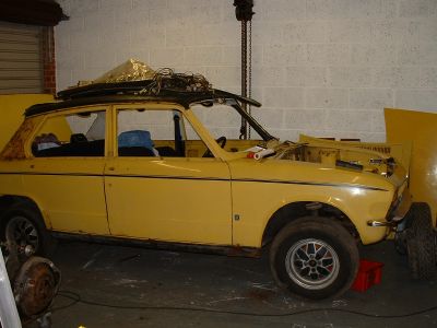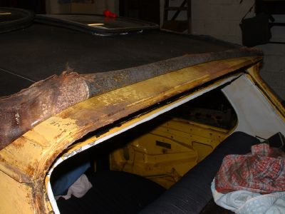 Stripped all the doors & pulled back the edges of the vinyl roof using a hot air gun to reveal the surface rust below. Sorted all the trim & glass ready to go in the loft for a few months.