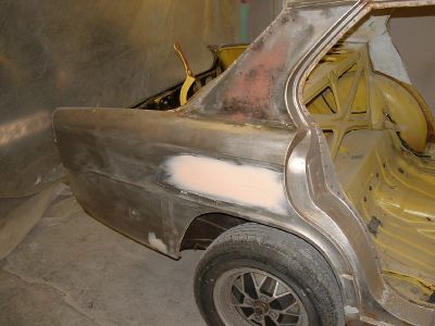 Getting there: I coat of etch primer & 2-3 coats of high build primer.